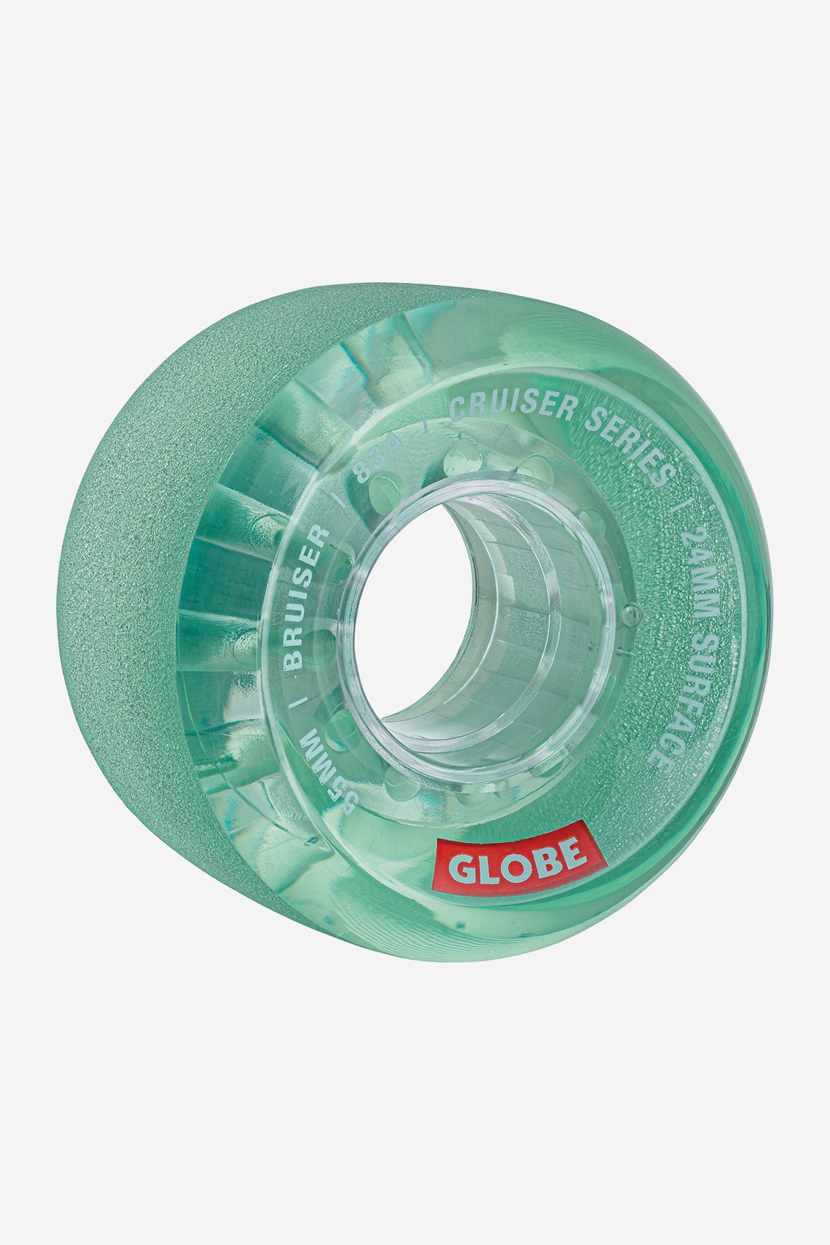 The Bruiser Cruiser Wheel in Clear Aqua is a friendly all-terrain cruiser wheel with street performance shape and characteristics. A little wider than a traditional street wheel with a face that cuts back toward the core for weight reduction and added response.