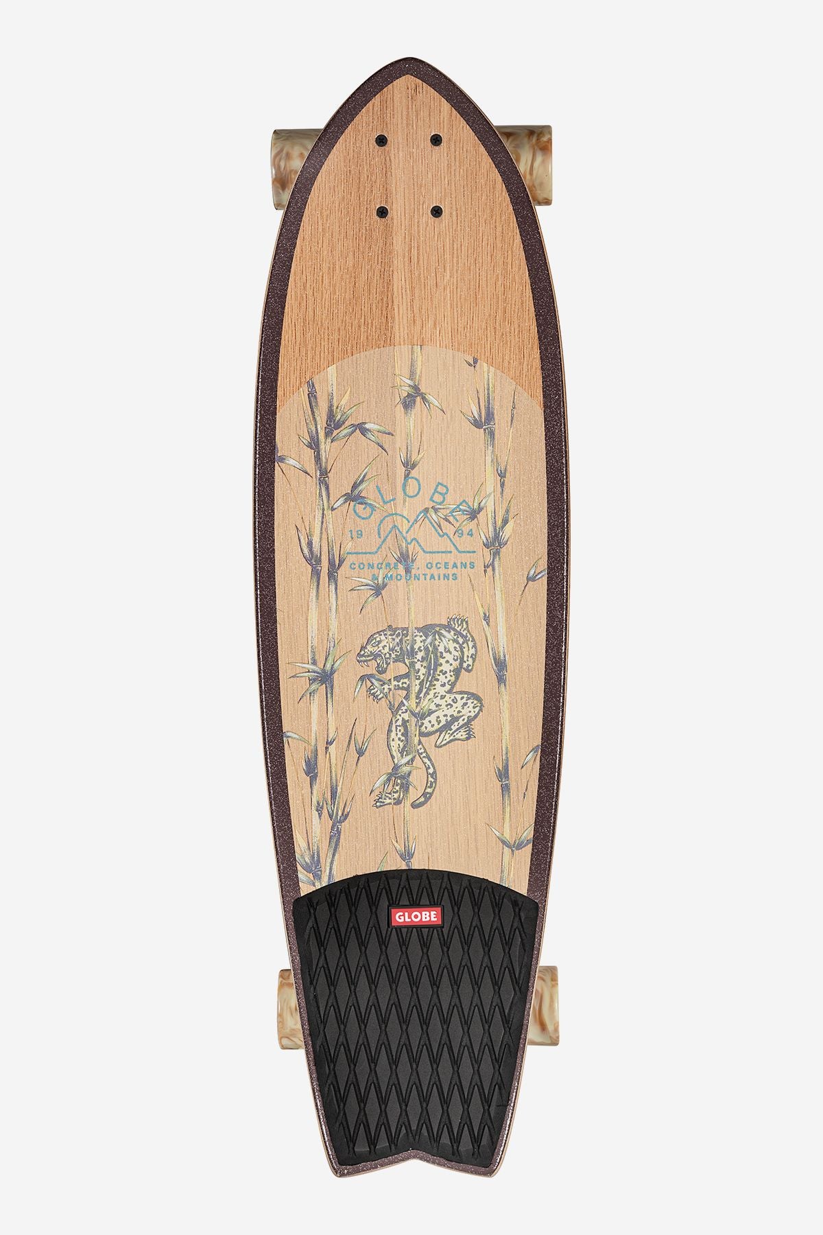 The Chromantic in White Oak/Jaguar is a medium-length Resin-7 hard rock maple surf-inspired swallow-tail cruiser.