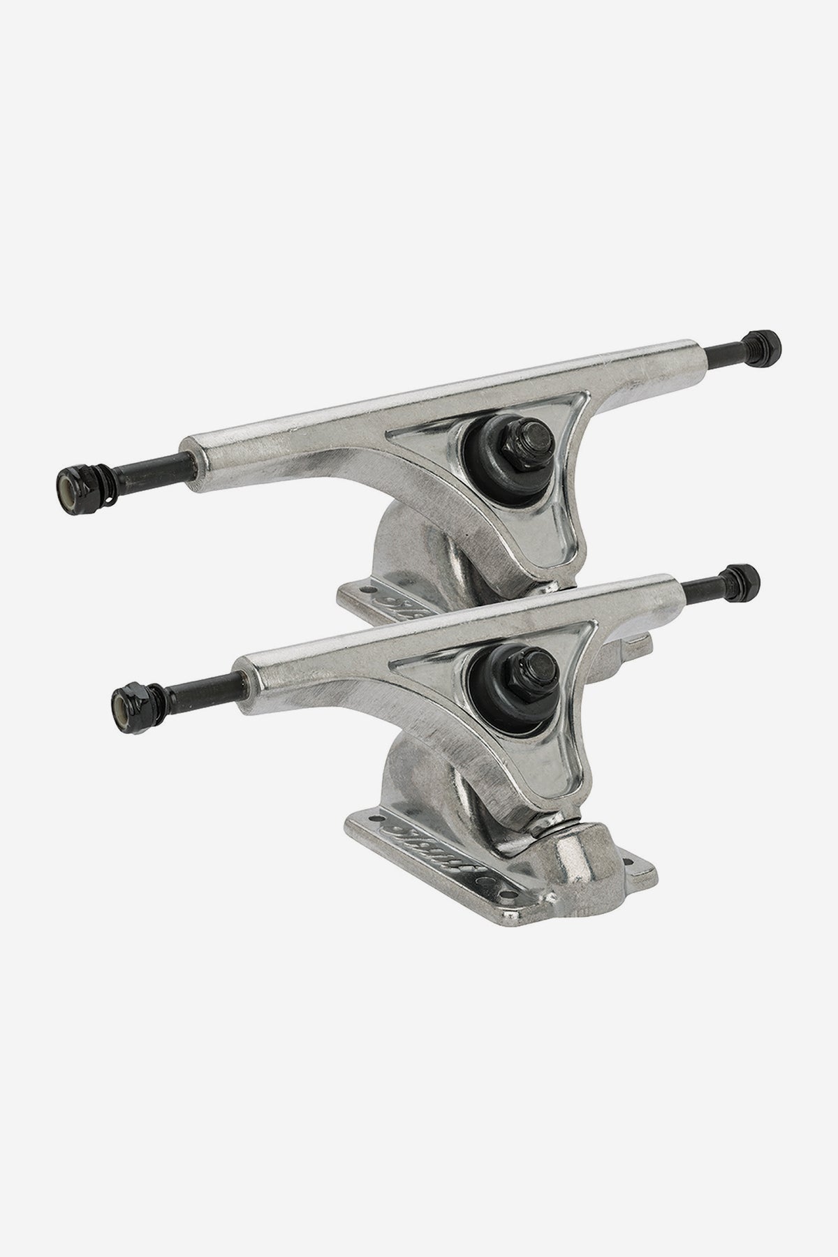 - Aluminum longboard trucks with reversible 50/54 degree hangers and grade-8 kingpins